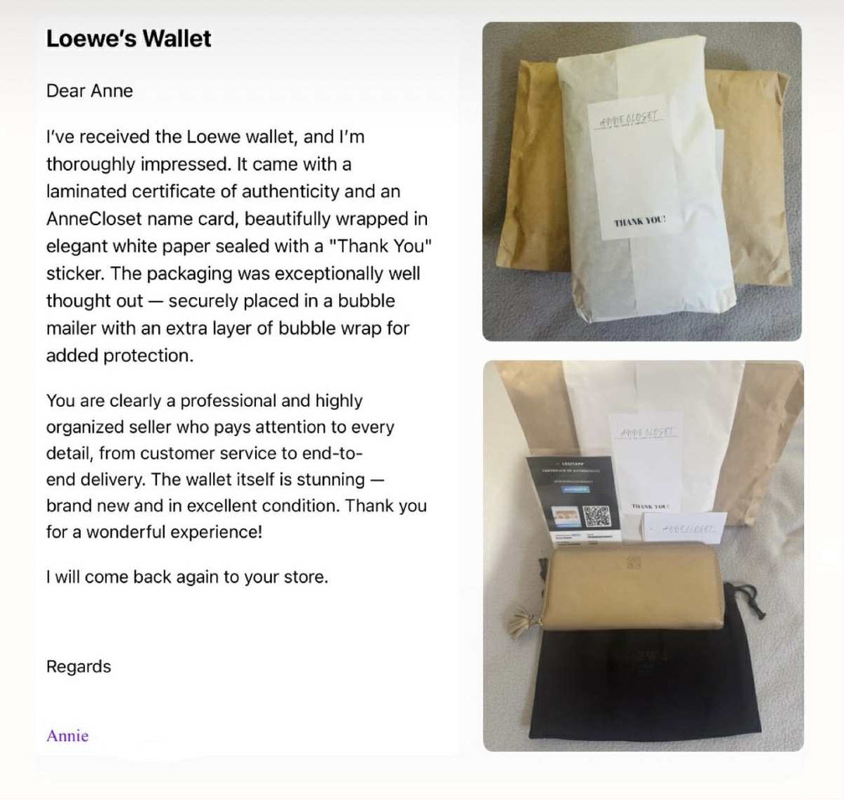 - Email your best photos to us at: info@annecloset.com