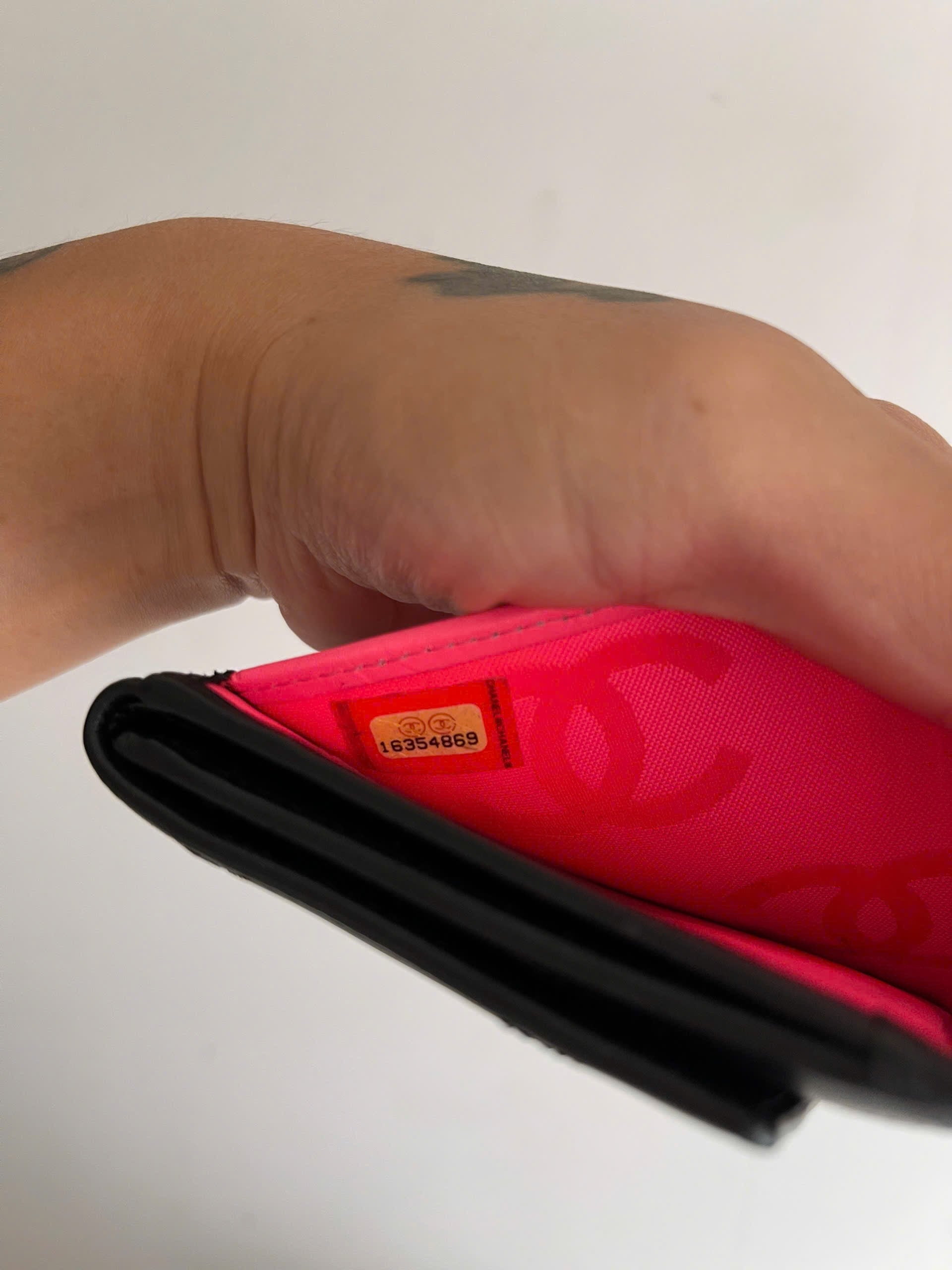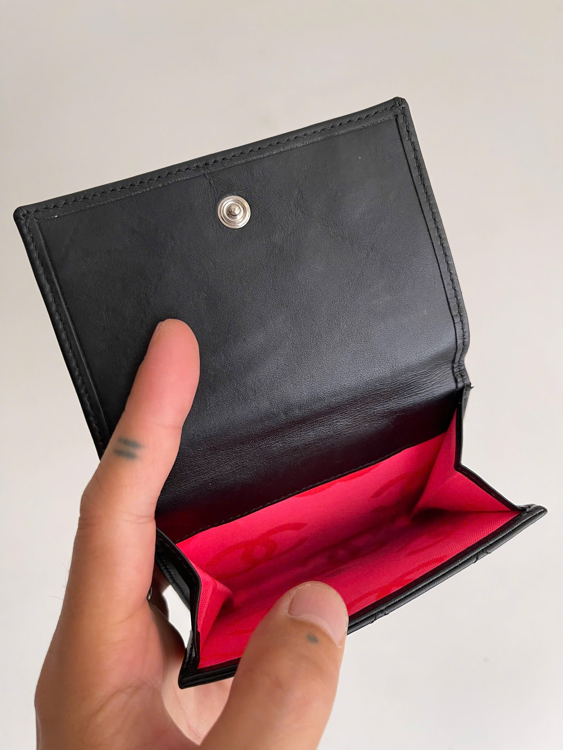 This ultra-chic card case is crafted of luxurious diamond quilted leather with a large Chanel CC patent leather logo patch.