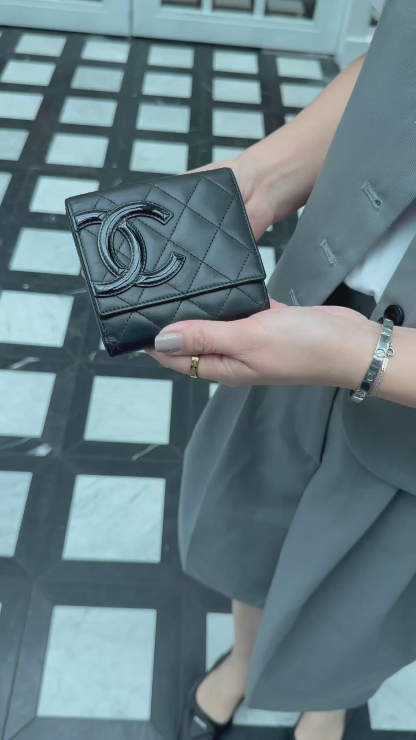 Chanel Cambon Compact Wallet Purse Black