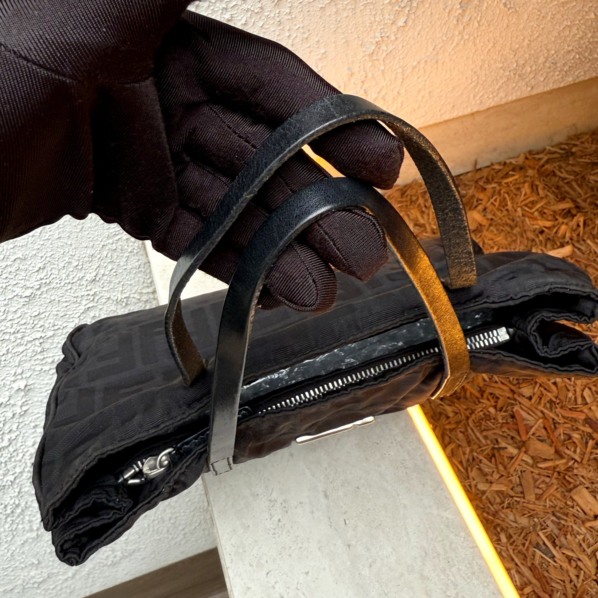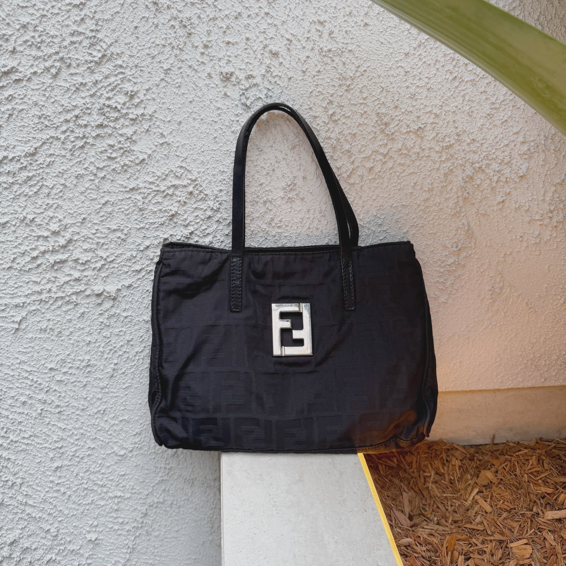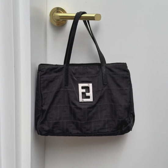 Fendi Silver Logo Mini Zucca Nylon Black Tote Bag