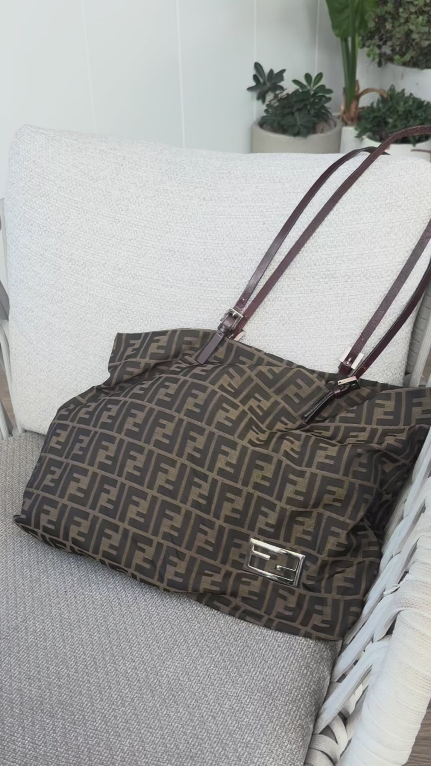 Bold yet versatile, the Fendi Zucca Canvas Tote is the perfect everyday bag with a designer statement. Crafted from signature Zucca printed canvas, the bag’s classic tote shape is lightweight and compact yet spacious, making it a practical choice for daily use.