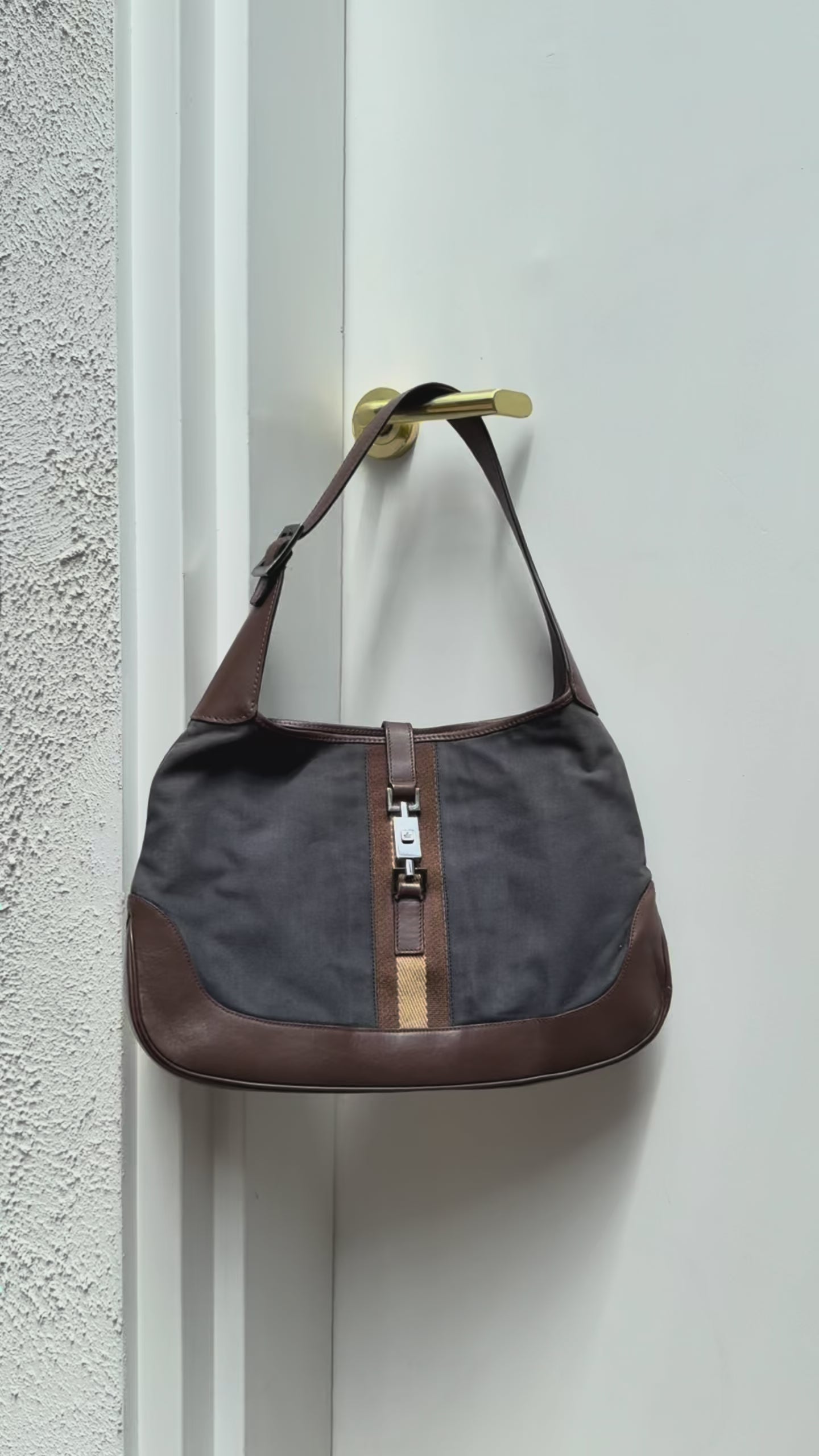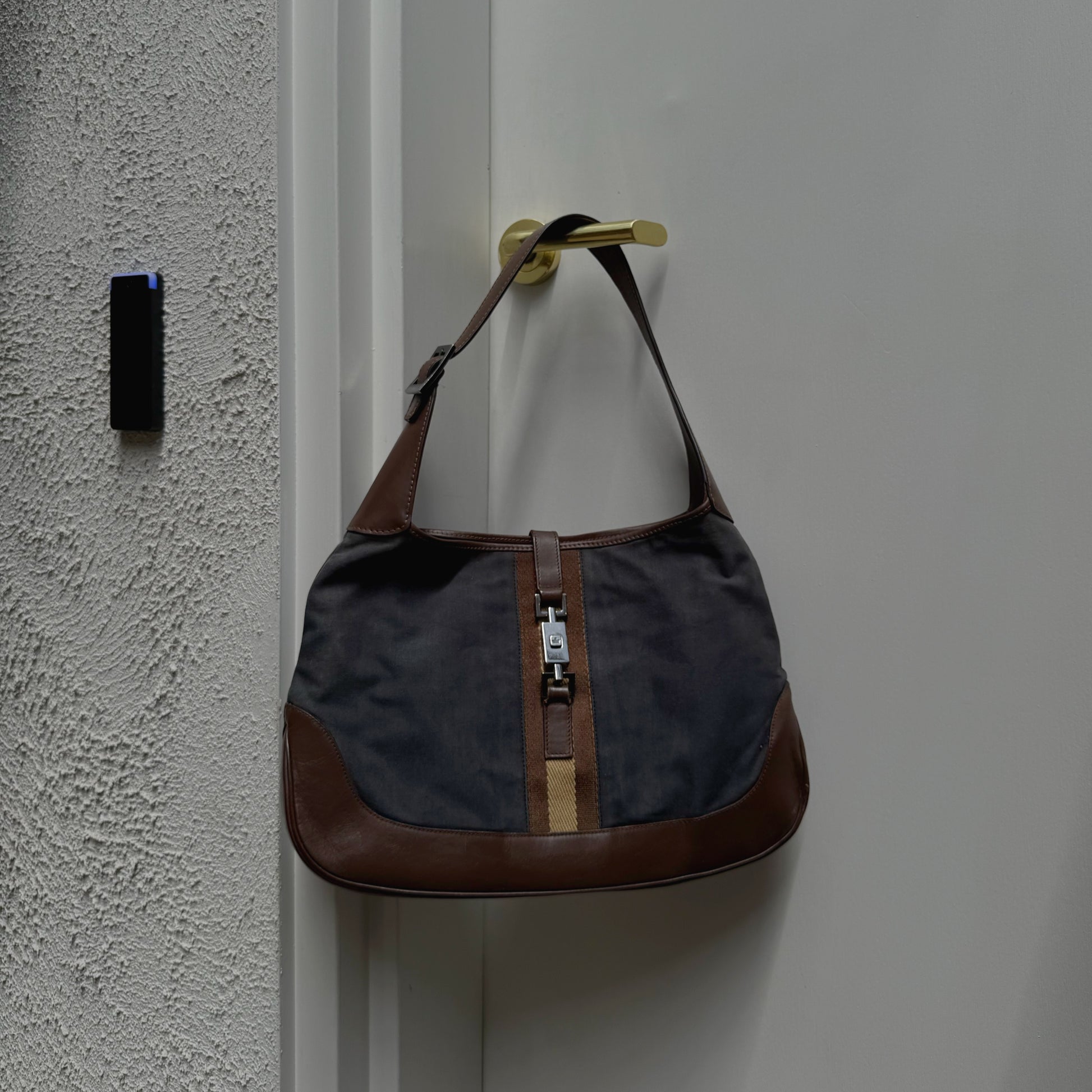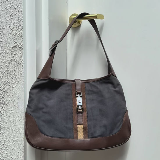 Gucci Vintage Navy Canvas & Brown Leather Jackie Bag