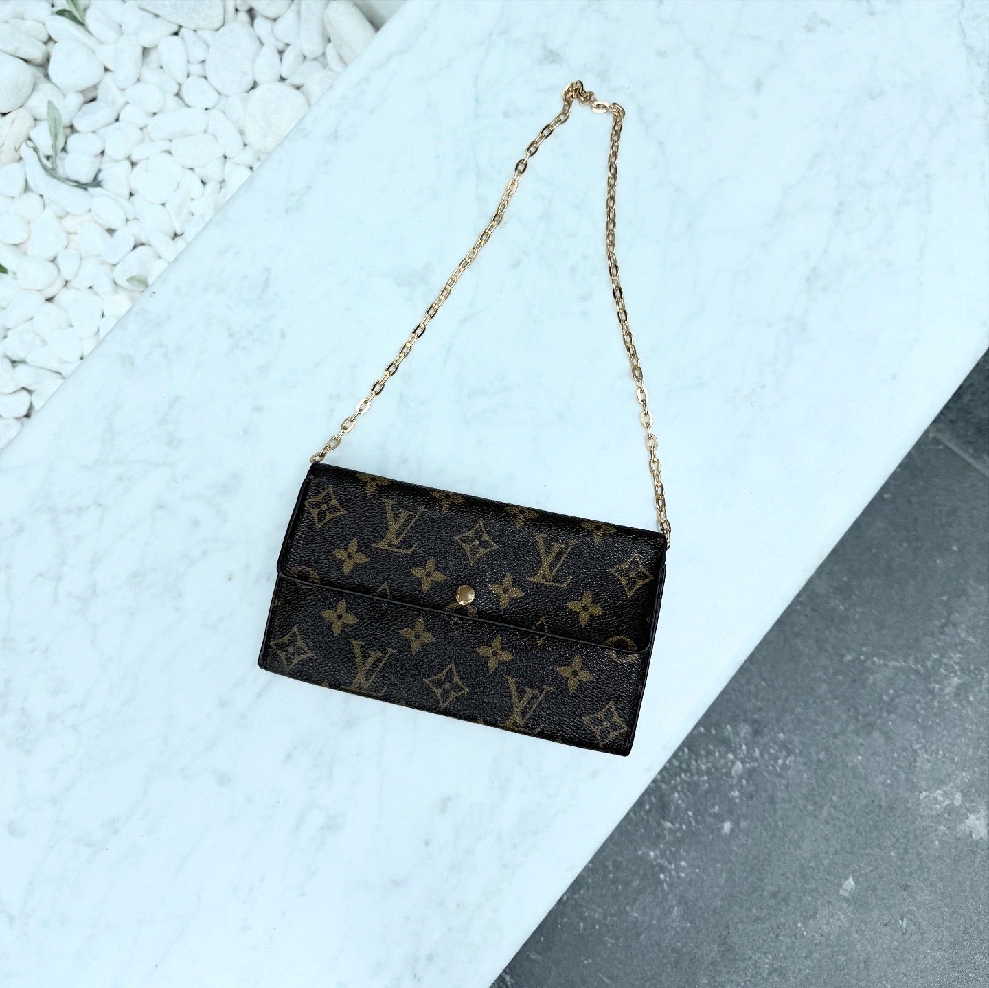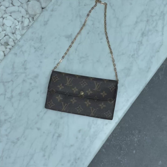 The Louis Vuitton Monogram Sarah Long Wallet is a timeless and elegant piece crafted from the iconic LV monogram canvas. Its structured design opens to a spacious interior with multiple card slots, bill compartments, and a zippered coin pocket—perfect for keeping your essentials organized in style.
