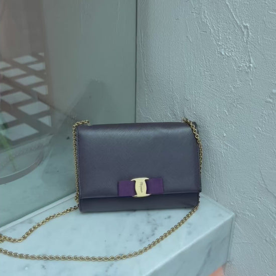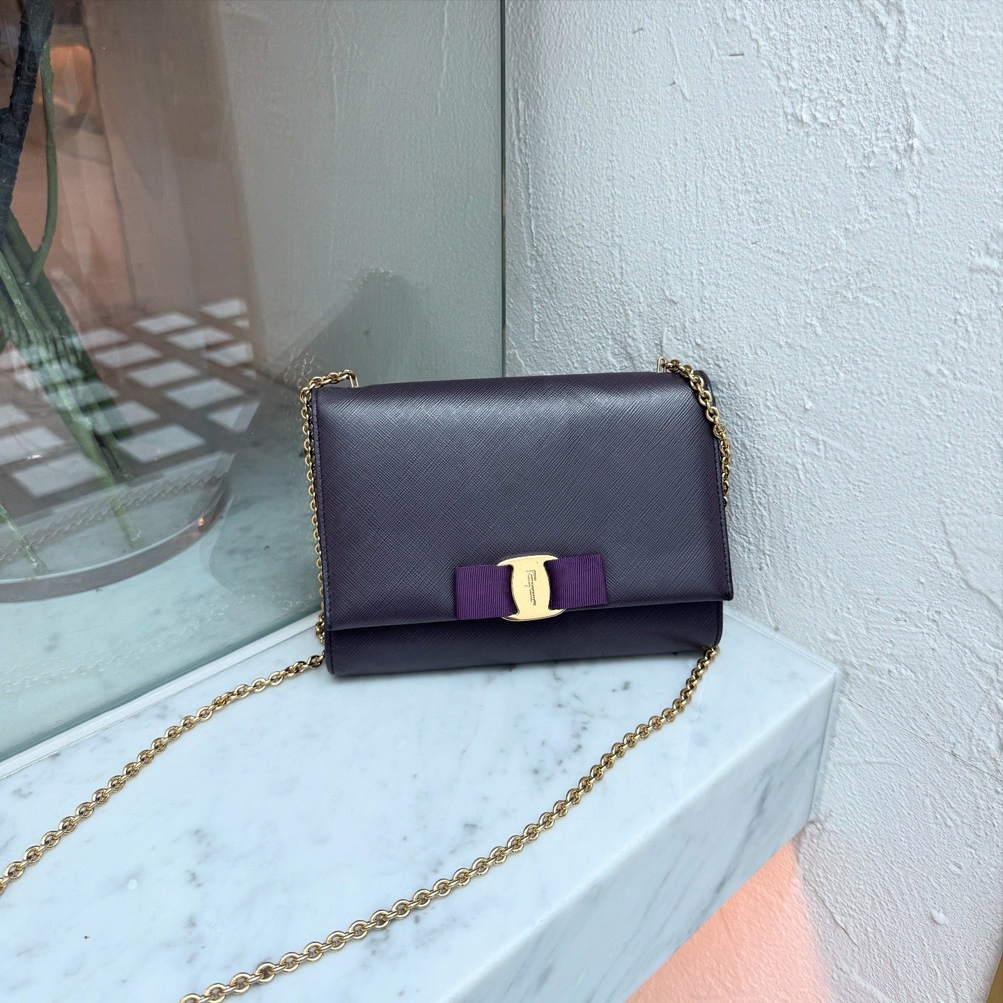 Salvatore Ferragamo Purple Saffiano Leather Genie Chain Crossbody